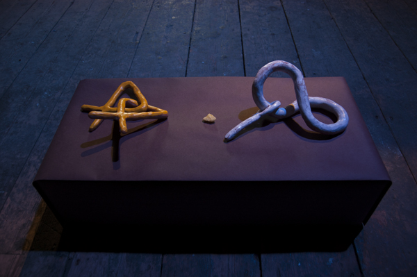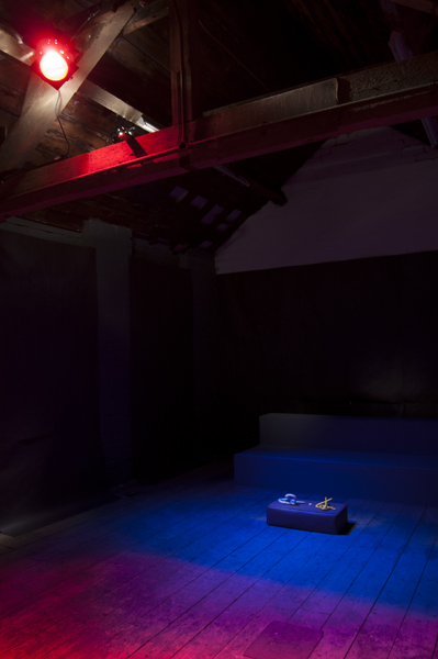 'Fortune tellers make a killing nowadays' is an exhibition developed by artists Richard Sides and Angharad Williams. The newly commissioned work uses the form of a play, in which scenes are presented as both architectural and theatrical propositions. Here, sculpture, sound, moving image and mise-en-scene are used to generate a fictional, physical reality. Central to the production are the journal entries of an astronaut on a journey to Pluto: a decommissioned planet, the ultimate non-place. The experiences of the protagonist, told through a first person narrative, provide a diegetic framework in which to pose questions with the materials of the installation. The work proposes an interrelationship between linguistic narrative and sculptural concerns; elements of the work function as theatrical props, whilst the corporeal account of the central character informs a physical understanding of objects and environment.